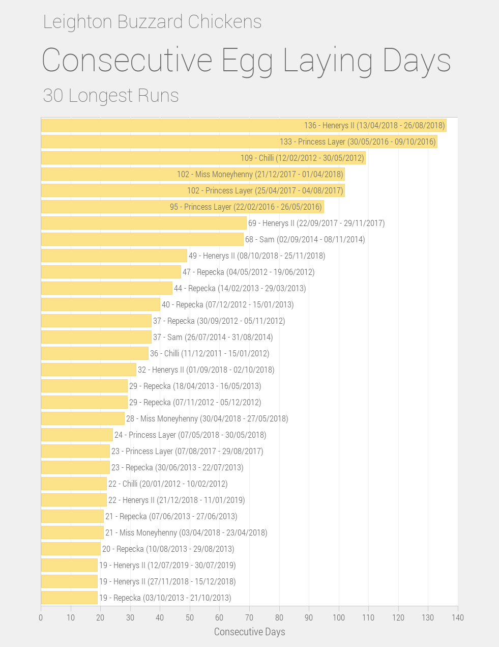 Maximum consecutive laying days